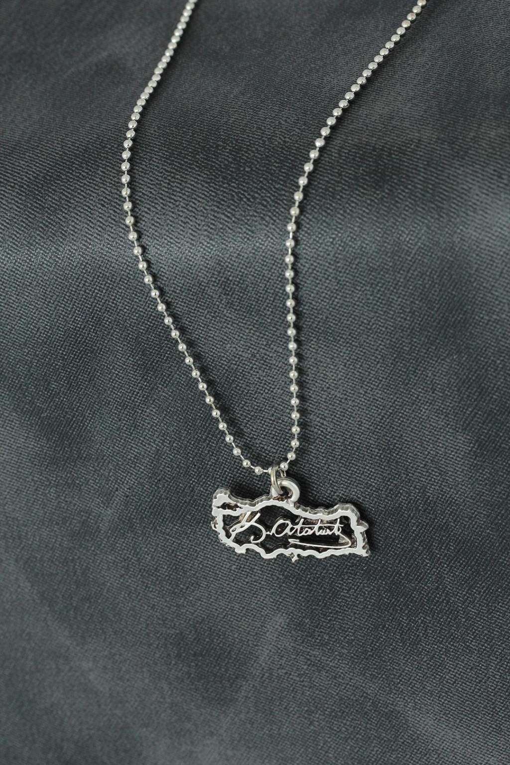 Atatürk İmzalı Metal Erkek Kolye şık tasarımı ile siz değerli müşterilerimizin beğenisine sunulmuşturZincir uzunluğu 60 cm'dir
