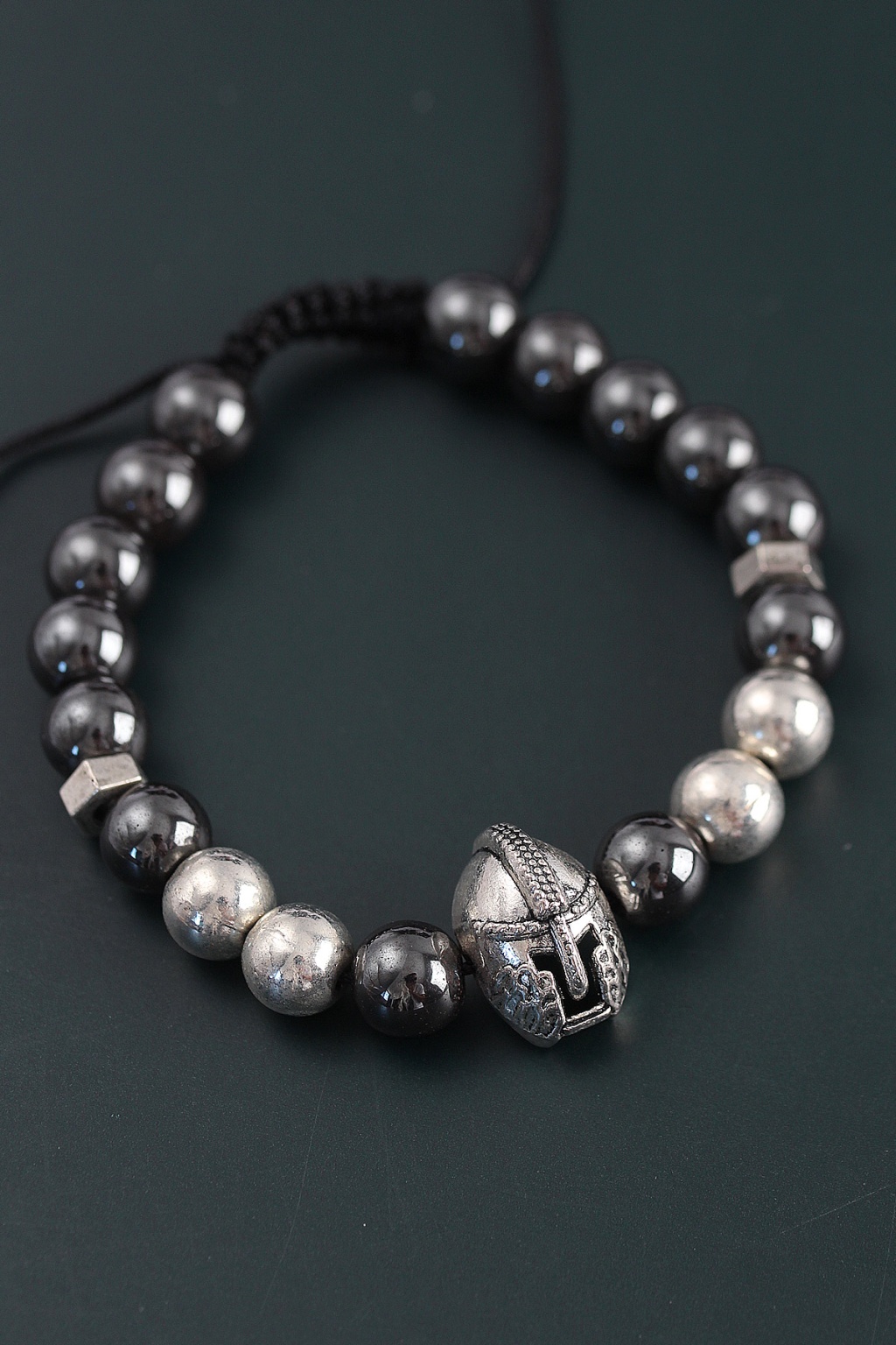 Doğal Taş Gladyatör Model Gümüş Ve Füme Renk Asansörlü Erkek Bileklik - TJ-EB3758