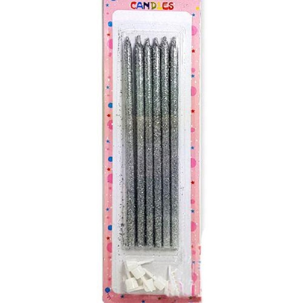 Gümüş Simli Pasta Mumu 6 Adet 16 cm