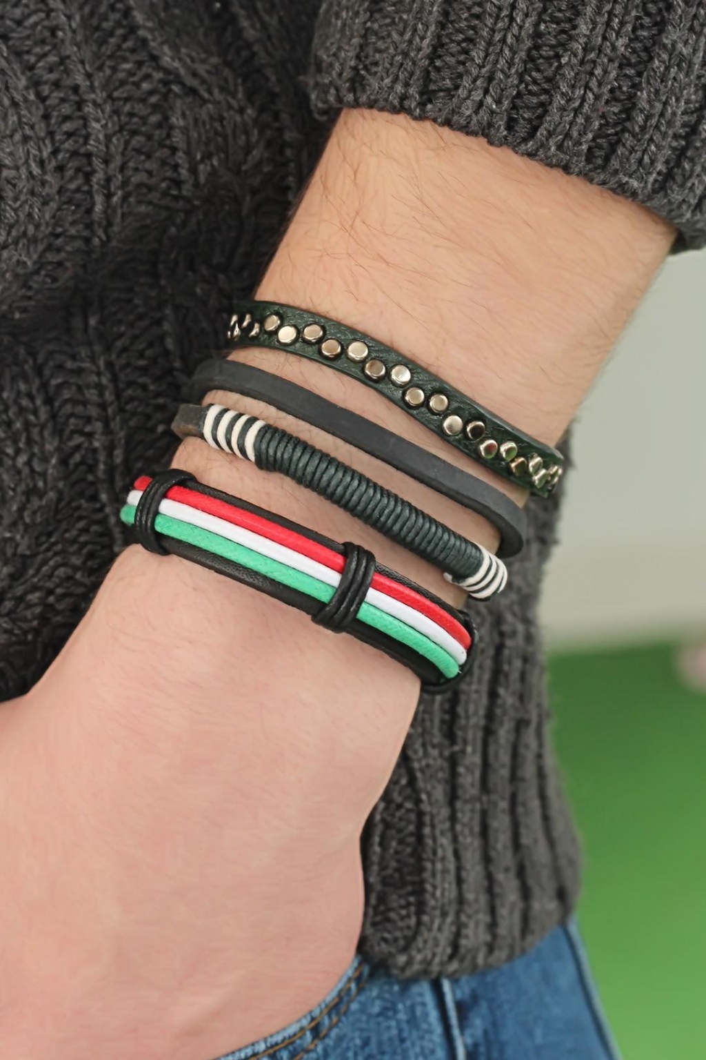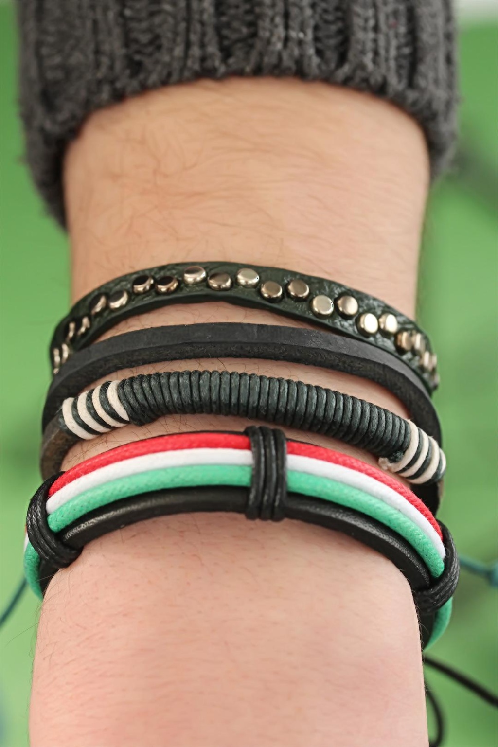 Dolu dolu şıklık için Karışık Renkli Çoklu Deri Erkek Bileklik Kombinini tercih edin.