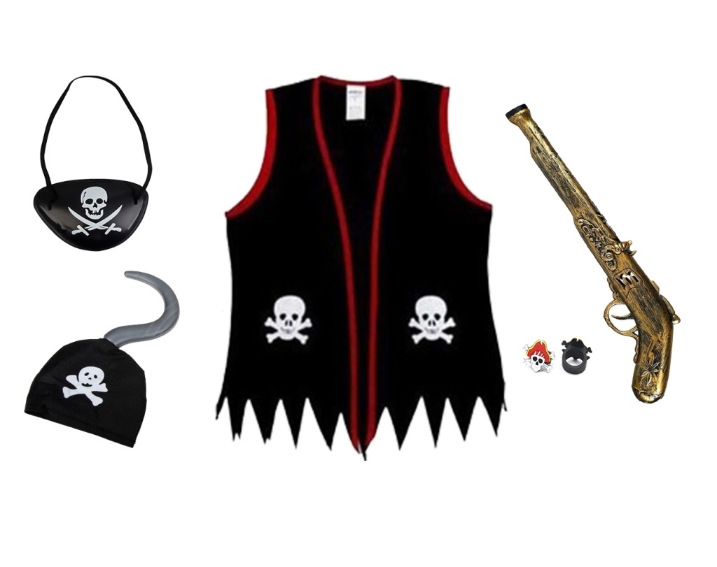 - Korsan Yelek: Gerçek bir korsan gibi görünmek için vazgeçilmez bir aksesuar. Kırmızı şerit süslemeler ve korsan amblemi ile dikkat çekiyor.
