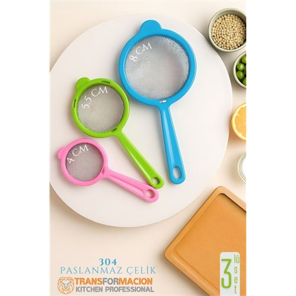 3 lü Süzgeç Seti - Çay Süzgeci - Un Baharat Süzgeci Paslanmaz Çelik