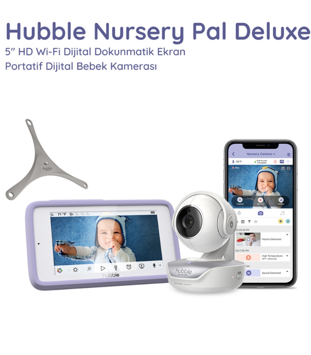 Bir bebek kamerasından daha fazlası! Nursery Pal Deluxe bebek monitörü sadece ebeveynler için değil, tüm ailenin kullanımı için tasarlandı. Bu yenilikçi Hubble ürünü 5″ HD renkli dokunmatik ekranıyla, çocukların büyüme süreçlerinde faydalanabilecekleri videolar, resimli kitaplar ve oyunlar içeriyor. Dahili batarya içeren portatif kamera, görüntü kaybı olmadan evin içinde dolaşırken kullanılabiliyor. Birlikte verilen Hubble Grip ayaklıklar sayesinde kamera herhangi bir yüzeye rahatlıkla monte edilebiliyor.