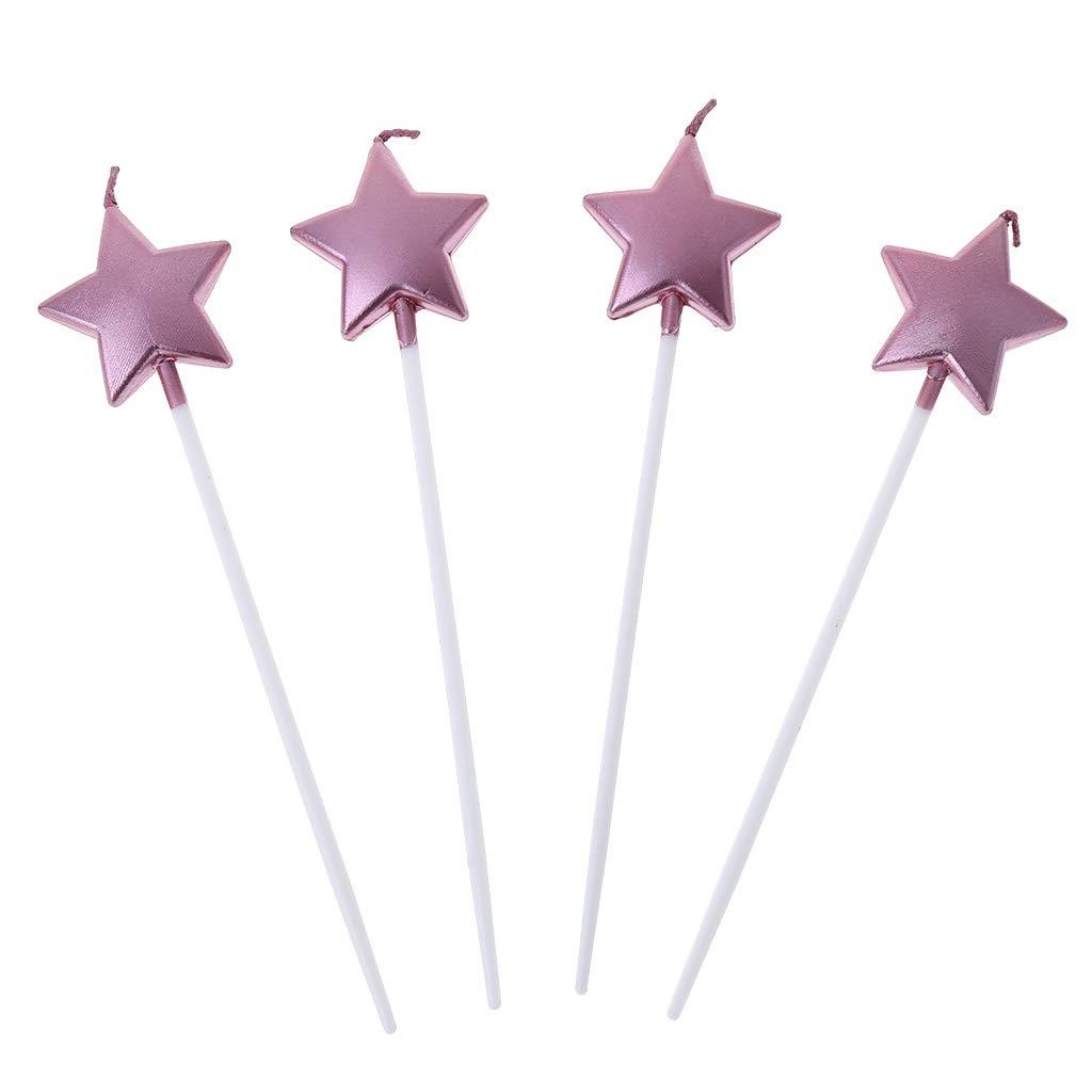 4 Pembe Rose Yıldızlı Mutlu Doğum Günü Pastası Mumları
