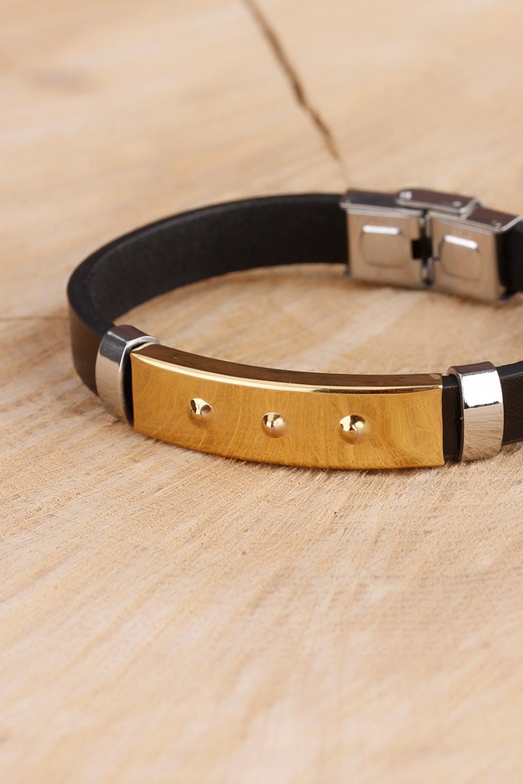 Sarı ve gri renk aksesuar ile detaylandırılan siyah silikon tasarım bileklik modeli ile kombinlerinizi hareketlendireceksiniz. Siyah Silikon Çelik Aksesuar Tasarımlı Detaylı Erkek Bileklik ile spor bir şıklık elde edeceksiniz.
