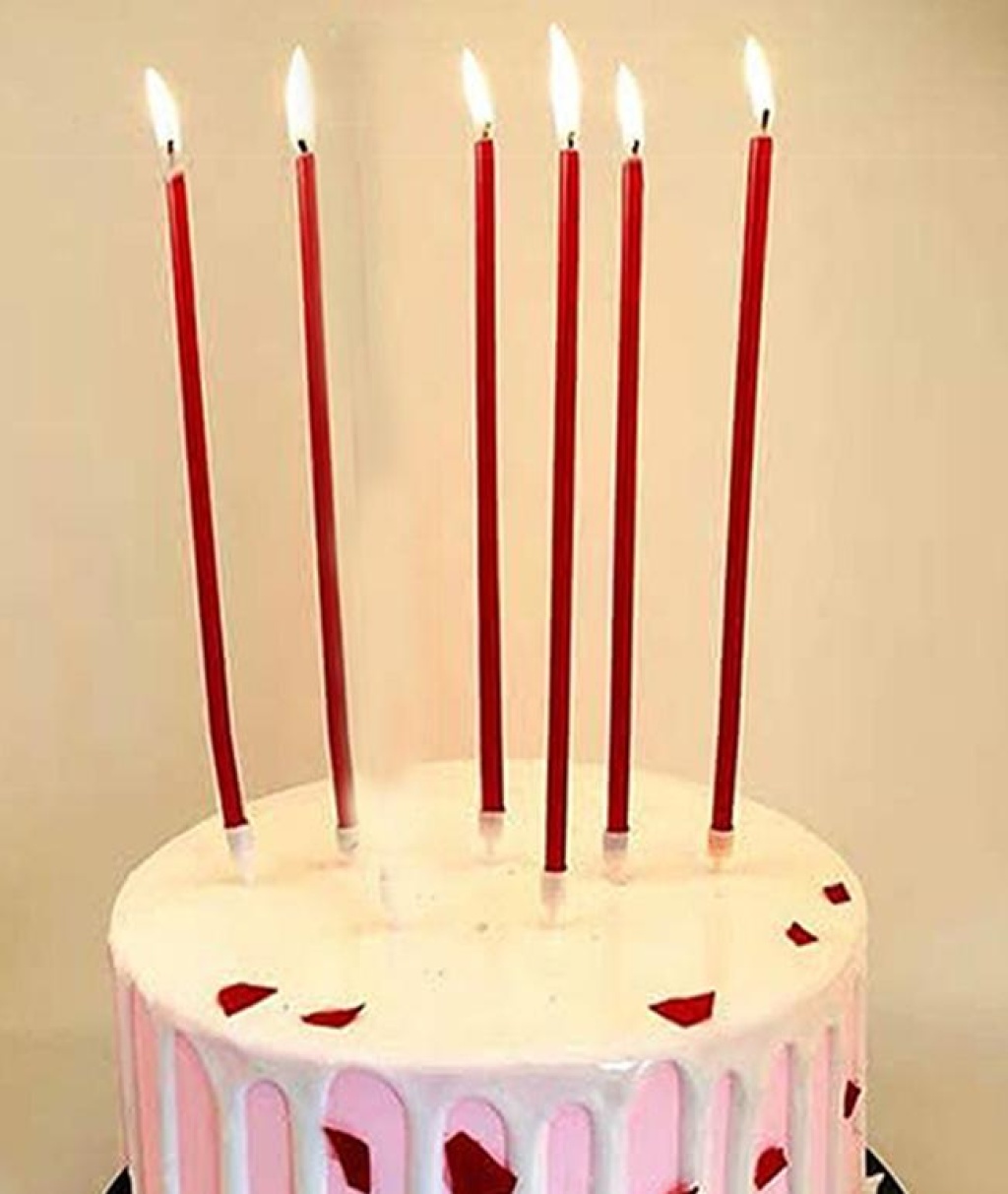 Uzun Kırmızı Renk Pasta Parti Mumu 6 Adet 16 cm